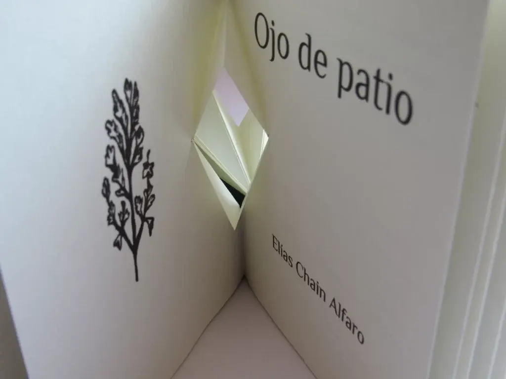 «Nuestra quinta publicación es «Ojo de patio» de Elías Chain Alfaro. El breve poemario recorre dos territorios: uno espacial y otro emocional. Existe un proceso de reconocer un estado mental, una enfermedad, para enfrentarla desde los vínculos con el jazz, la escritura y los estados de observación sin medida. No todo ocurre en un patio.