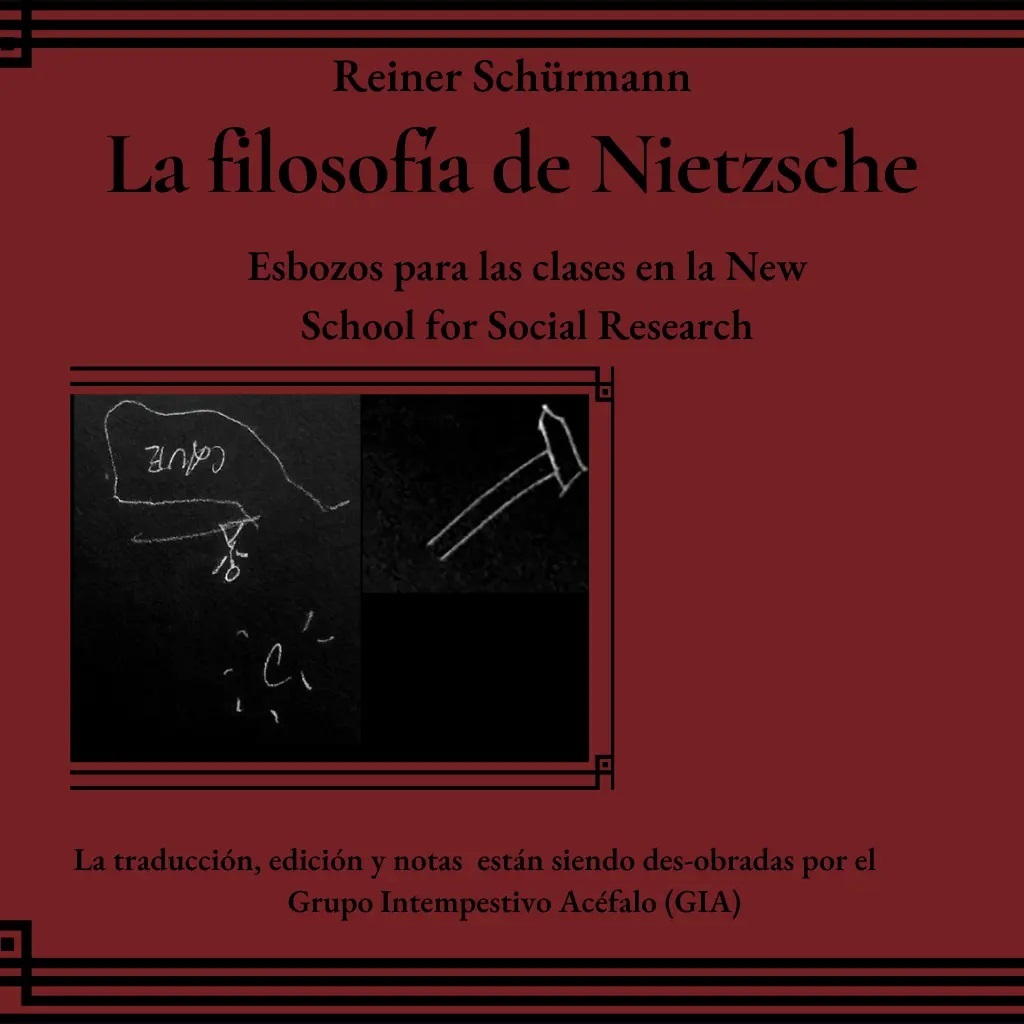 He aquí el Escolio a la primera edición en español y la traducción de la primera clase del libro de Reiner Schürmann La filosofía de Nietzsche Esbozos para las clases en la New School for Social Research (Verano de 1975, Otoño de 1977, Primavera de 1984, Primavera de 1988).